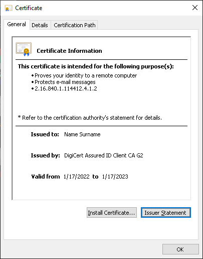 DigiCert Client Premium (SMIME)