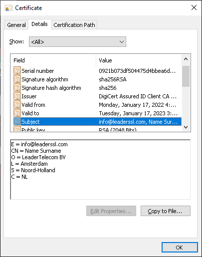 LeaderTelecom DigiCert Client Premium (SMIME)-Zertifikate - Preise